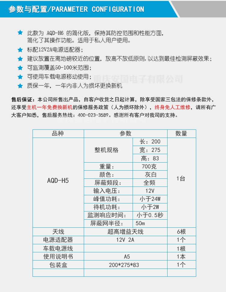 配套包装 | 主机,7根天线,电源适配器,车载电源线 | ||