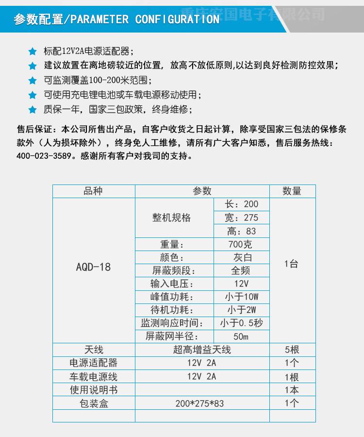 配件 | 电源适配器,车载电源线,5根天线 | ||