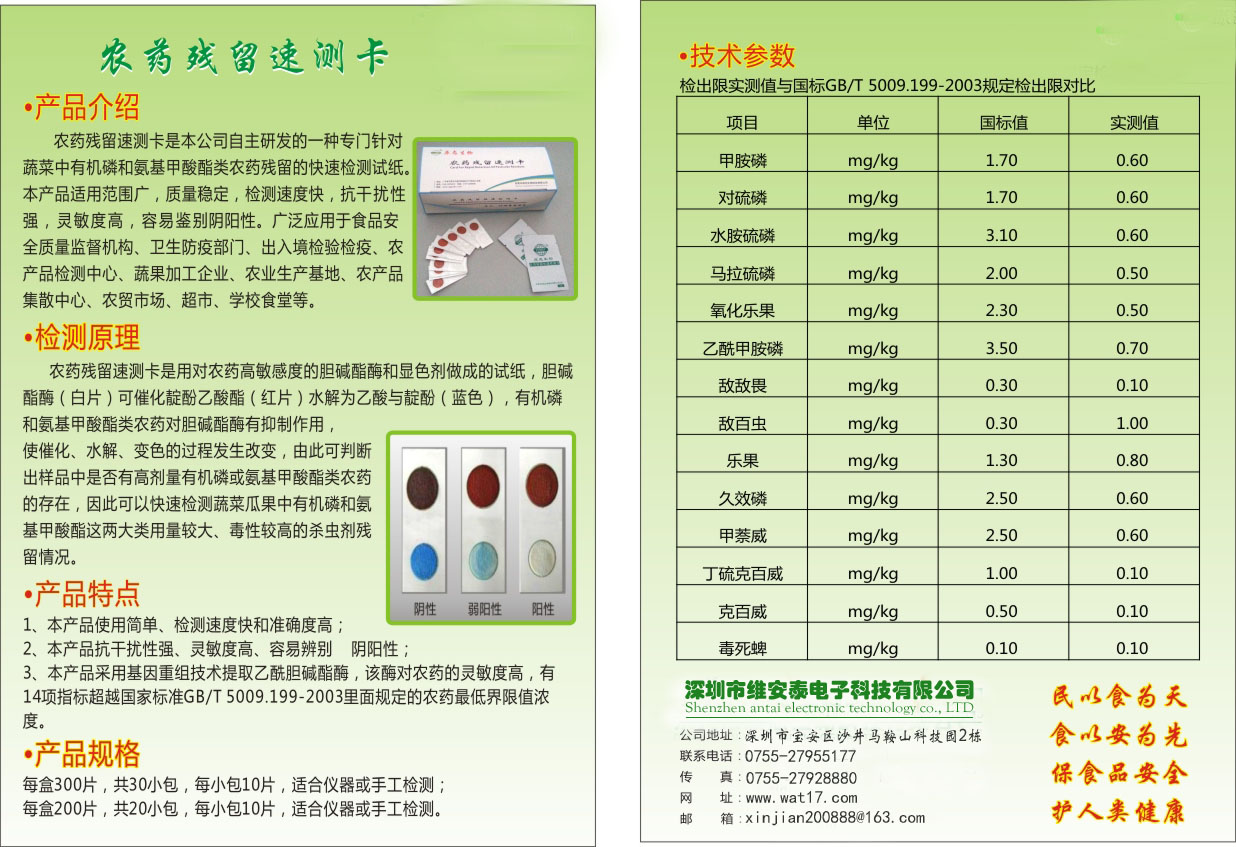 农药残毒快速卡使用说明 单价:16元一盒 量大价格优