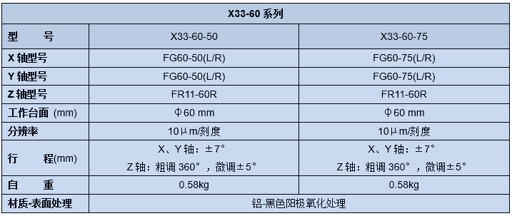 3. 多样化:为了满足不同客户的不同需求,我们的调整平台行程和台面尺寸长短、大小不一,台面尺寸Φ60,行程有13mm-25mm之间的不同的产品,并且平台可组合成四维、五维平台, 双弧形滑台组合,角度调整更精确、满足不同方向和不同角度的调整;