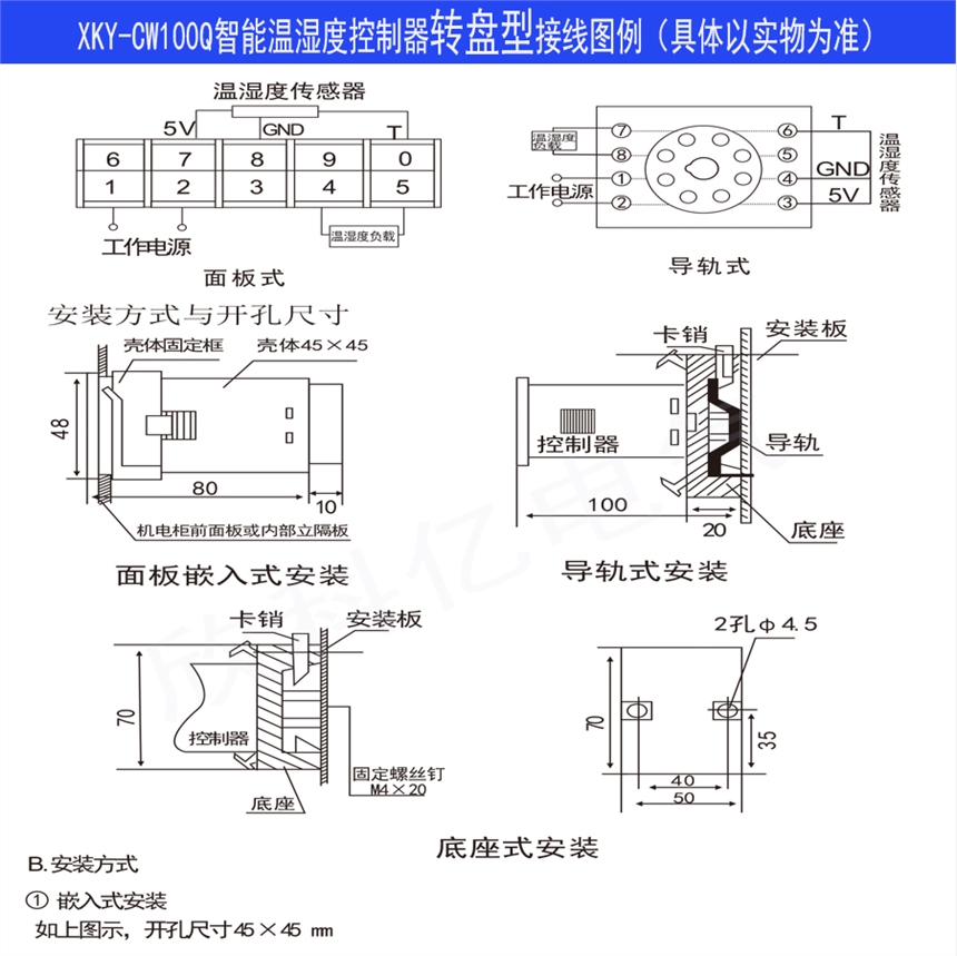 XKY-CW100系列智能温湿度控制器转盘型号:XKY-CW100Q、XKY-CW100W