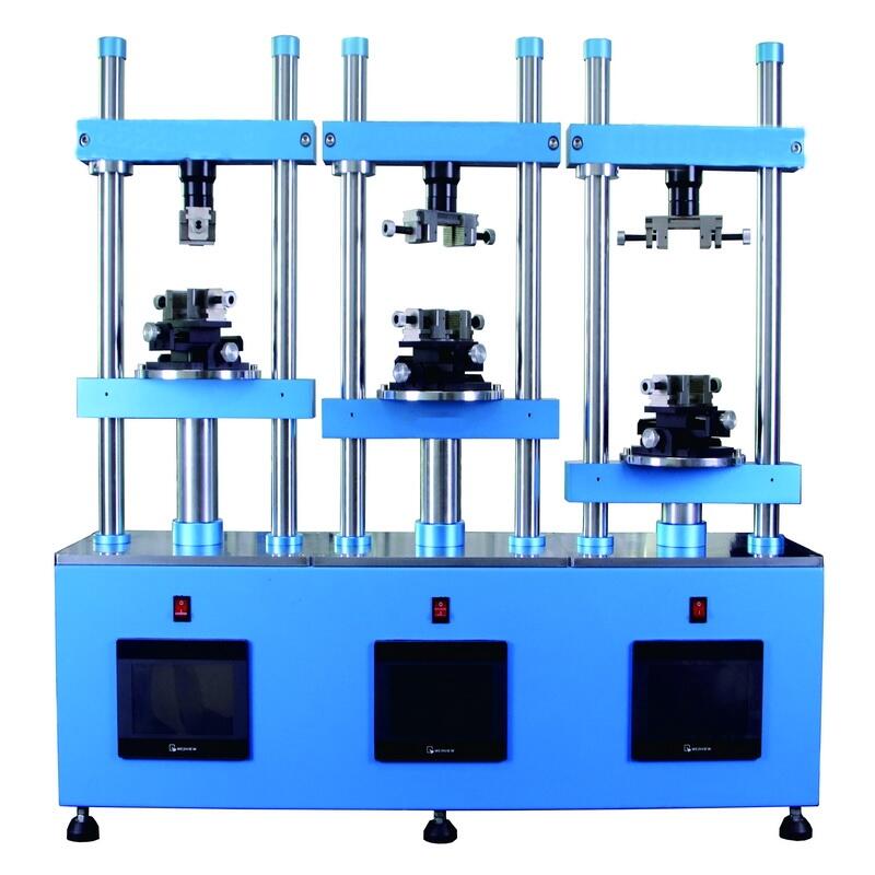 本机采用立式结构,多工位设计,可以同时测试五个产品的产品测试。测试效率高。适用于多种连接器插拔试验之用,采用嵌入式微电脑测控技术,可同时显示插入力、拔出力、实时力值,并具有次数设定,速度行程可调,并且显示速度值、自动归零、单位转算等。马达驱动,丝杆传动,行程设定准确,是市场上性价比高的一款连接器端子接插件插拔力寿命试验机
