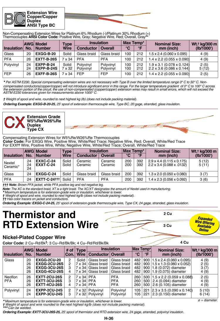 EXTT-B-26S-25 PFA绝缘层延展级热电偶线,26号线规,25英尺,BX型