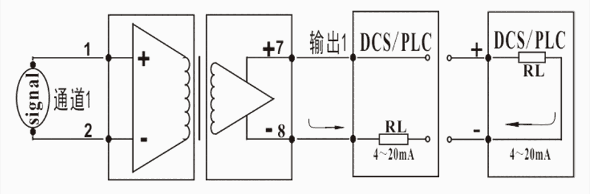例2: 信号输入:0-20mA; 信号输出:0-20mA; 产品型号:JSD TAW-100L