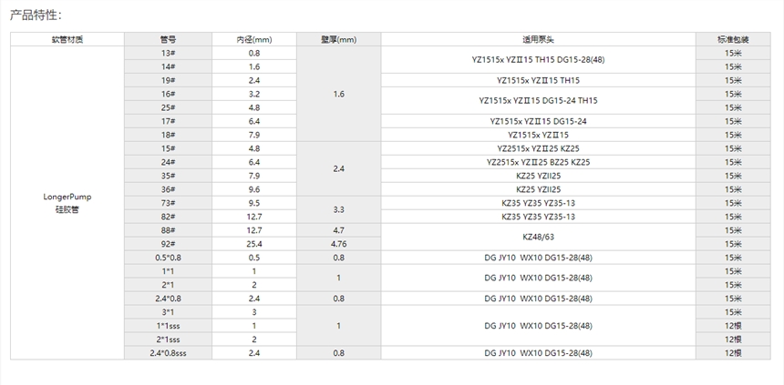 兰格 软管 LongerPump国产蠕动泵硅胶管 适用场所: 蠕动泵泵头专用