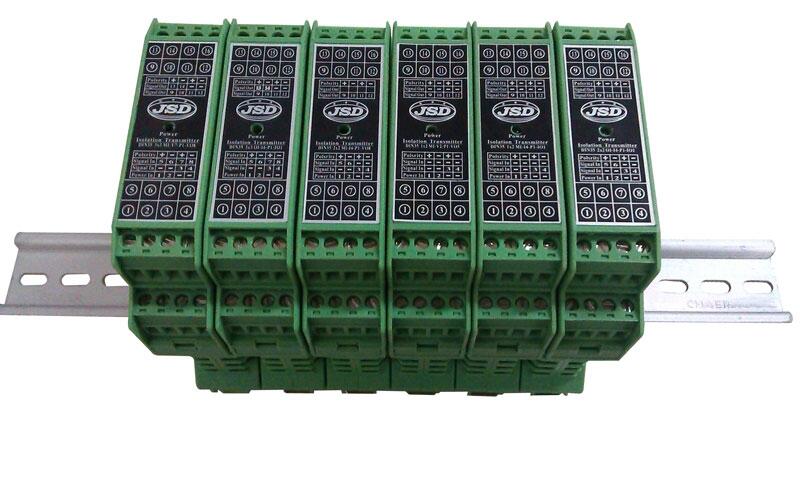 隔离变送器是一种特殊测量的厚膜集成电路或集成的放大电路,该电路的输入信号,输出信号与工作电源电路之间没有直接电路耦合,无论是工作电源还是输入输出信号在传输时都没有公共的接地端,这样使该设备在工作时能够保护输入,输出设备的安全运行,有效的抑制空间电磁干扰及各种天体干扰,保护设备不被损坏。捷晟达科技的JSD TA-1001-D11是输入输出三隔离的,广泛用于工业自动化控制系统。