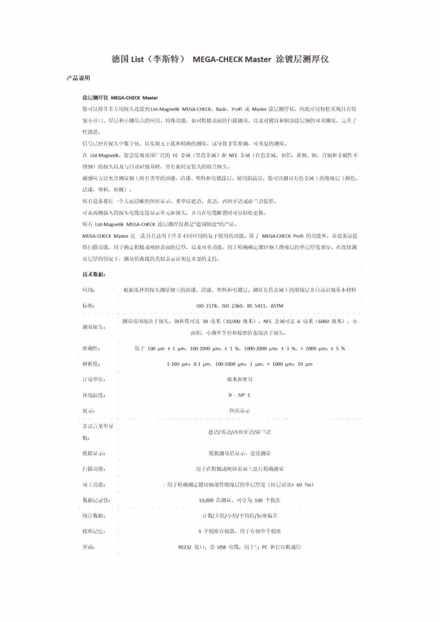 德国List(李斯特) MEGA-CHECK Master 高精度涂镀层测厚仪