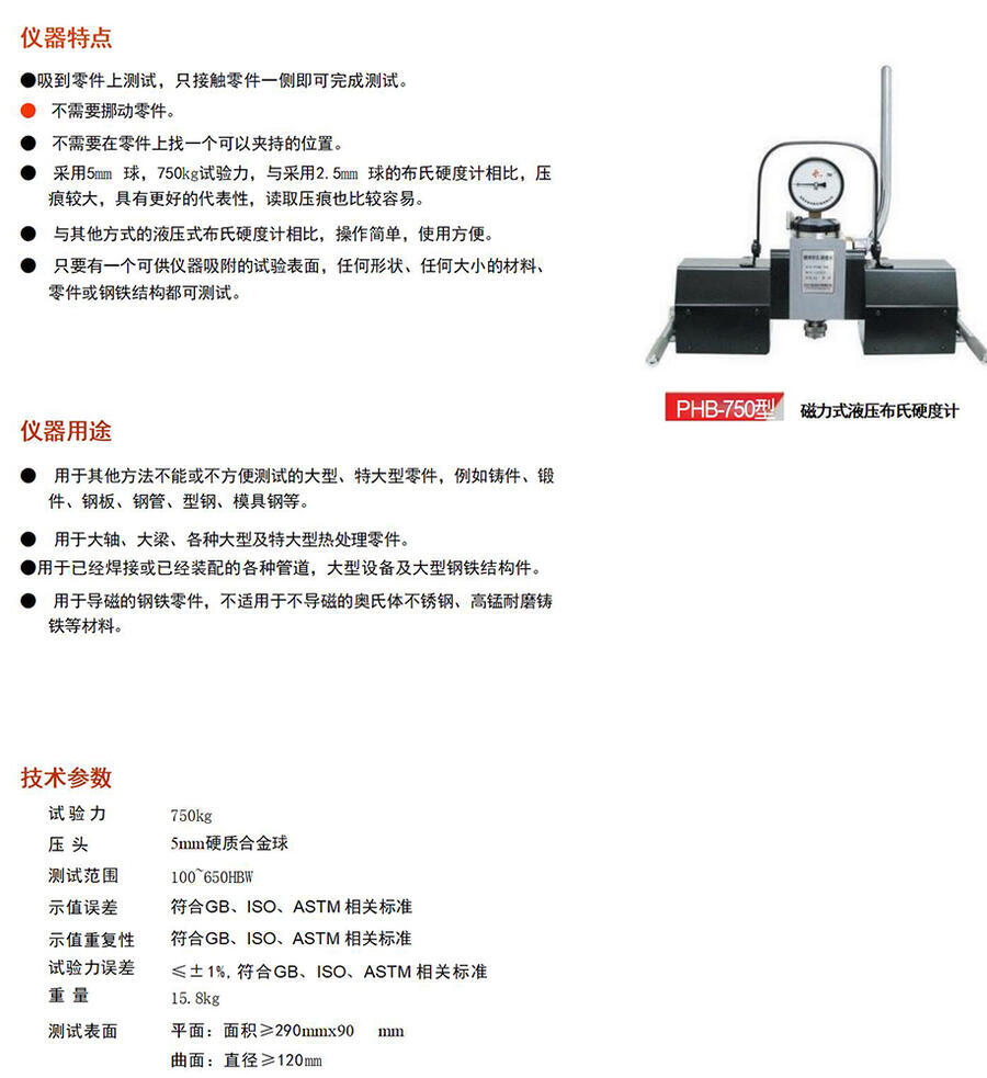 PHB-750型便携式磁力式液压布氏硬度计 操作简单携带方便