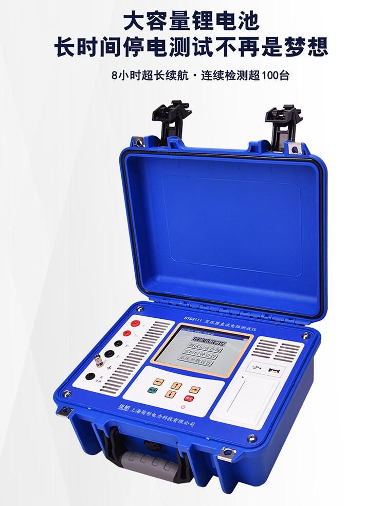 佐航 BYQ3111 变压器直流电阻测试仪是一款创新型产品,内置大容量锂电池,产品体积小巧,便于携带。产品不仅适合变压器、互感器、电抗器等感性试品的测量, 而且适合铜排、导线、开关触点等阻性试品的测量,仪表测试速度快、准确度高。