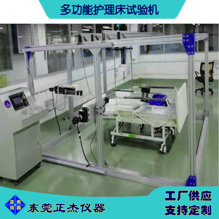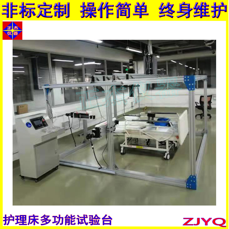 可实现1,1350N动态力耐久测试;2,750N静态力测试;3,护栏强度耐久测试;4,弹簧冲击锤20次耐久测试;5,吊环750N(,采用气缸施力,高精度传感器,可设置负载力量,负载时间、反复推拉及冲击测试。用于医用病床护栏强度耐久测试,静态抗压试验,反复压缩1000次)耐久测试。