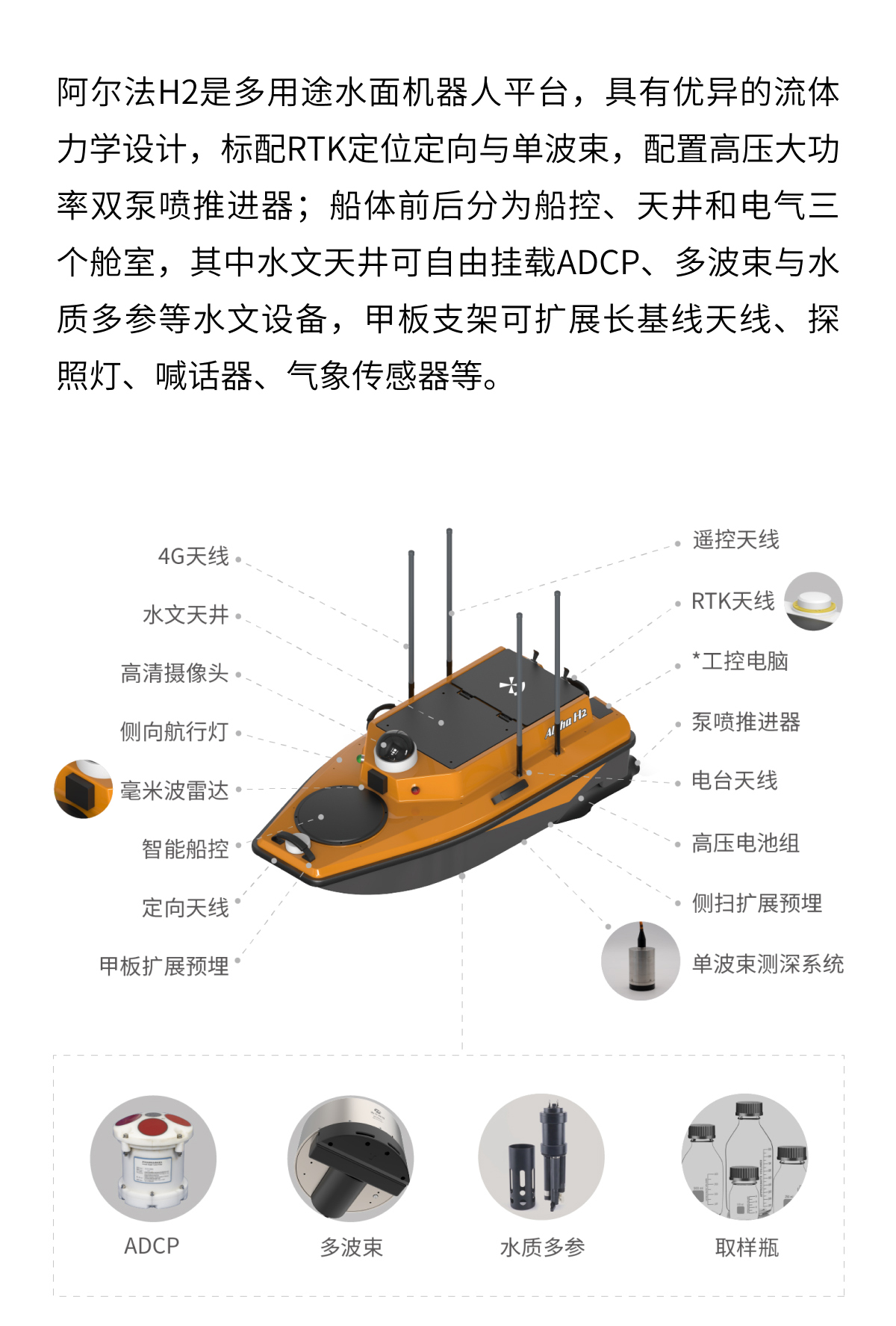 阿尔法Alpha H2全功能无人船 水文船