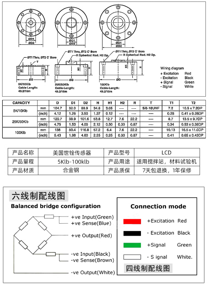 美国世铨轮辐式合金钢称重传感器LCD-2.2T
