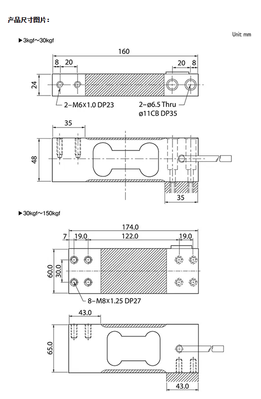 量程可选:3,5,6,12,15,30,50Kgf