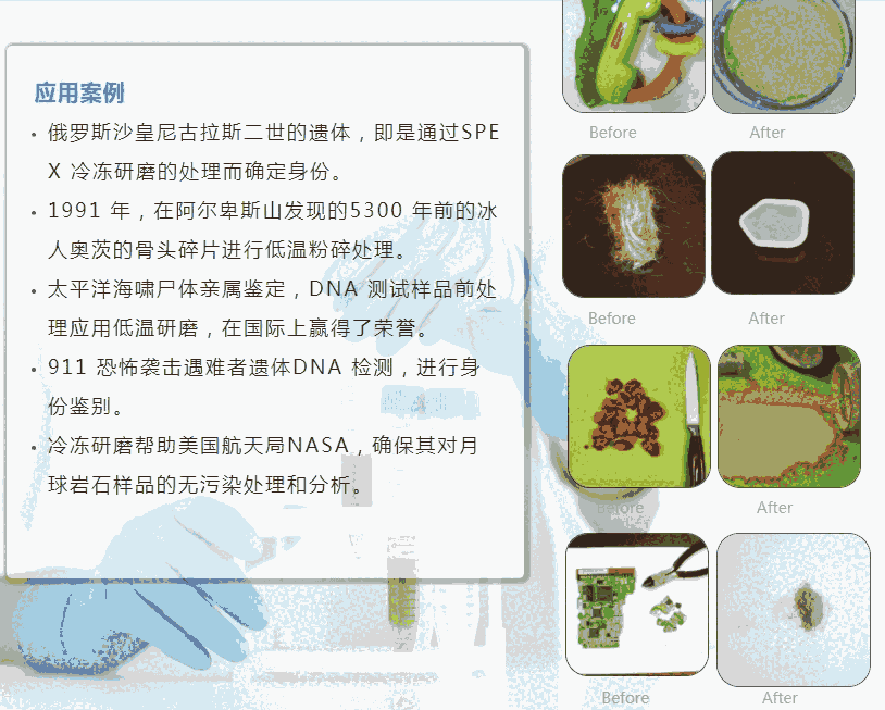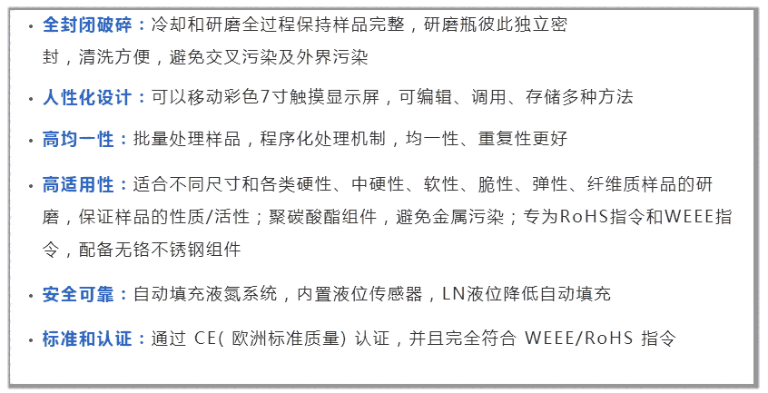 1.真正的-196℃冷冻研磨:研磨全过程,研磨瓶浸入液氮,保证超低温环境;