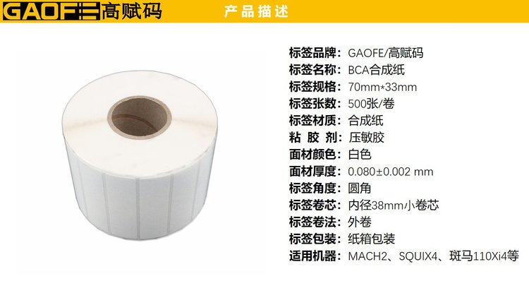 白色半透明格拉辛底纸。用于卷筒材料的底纸,适用于光电管贴标系统。