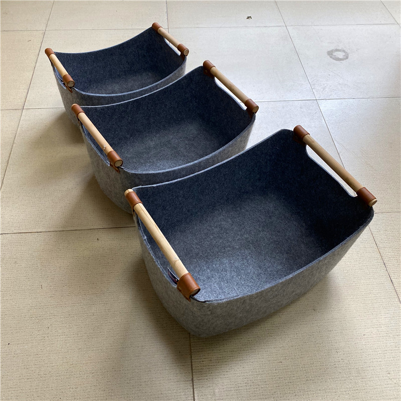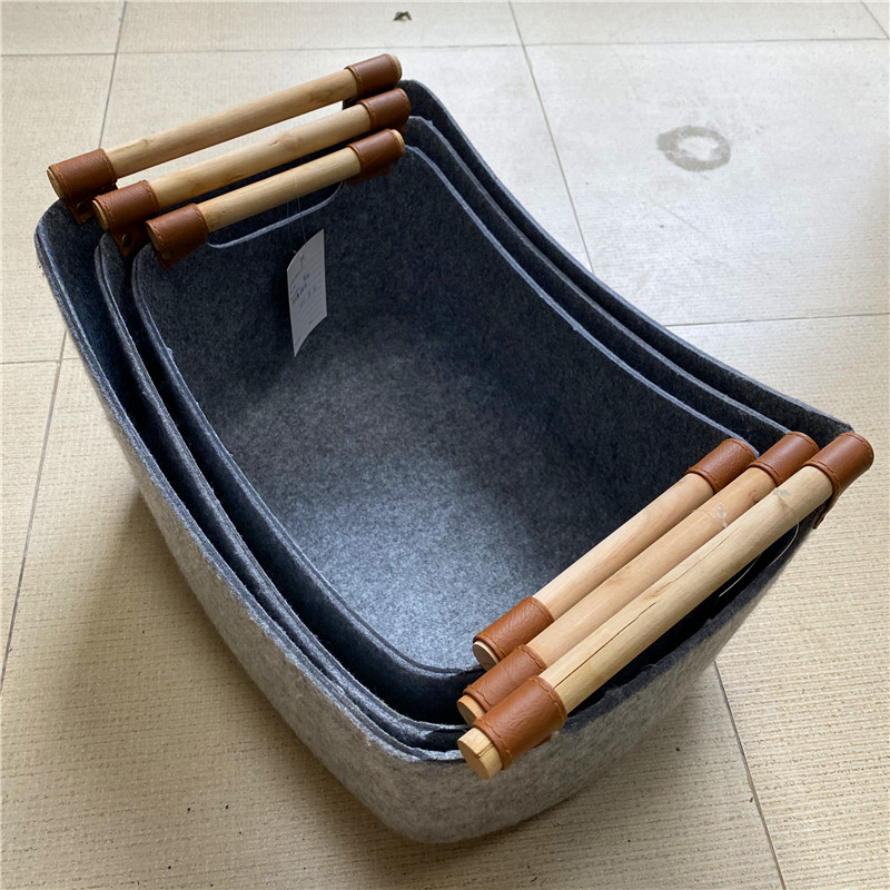 毛毡布热压成型大中小三件套木把毛毡收纳筐