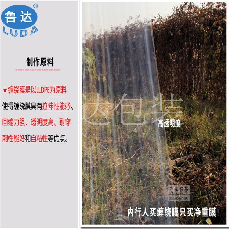山东鲁达生产的拉伸缠绕膜,延伸率好,韧性强一般不建议使用太厚的缠绕膜。造成不必要的浪费,一般手用规格根据自身产品特性选择厚度:15mil-23mil即可,机用厚度:23mil--27mil即可达到一般需求的韧性和延伸率,降低使用成本(厚度越厚相应重量的拉伸膜可使用的米数越短,韧性越好,可减少缠绕的层数,节省使用成本)