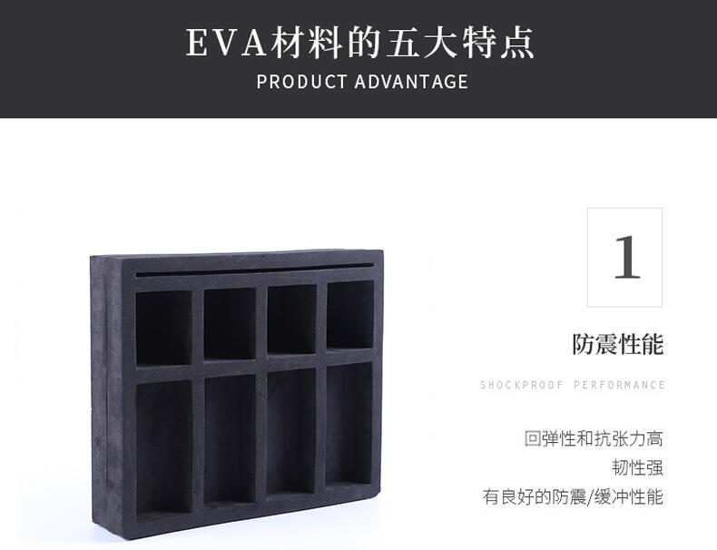 五金箱包礼盒内托我厂拥有EVA异形线切割机、EVA异形研磨设备、、EVA热压床、其它加工设备等,为客户定做各种不同形状的EVA制品,EVA异形产品可根据客户不同需求进行外观处理,达到哑光效果,手感细腻,适用于包装、玩具、电子产品,同时也可进行表面光亮处理,达到高端大气效果,适用于装饰品、玩具、包类产品。