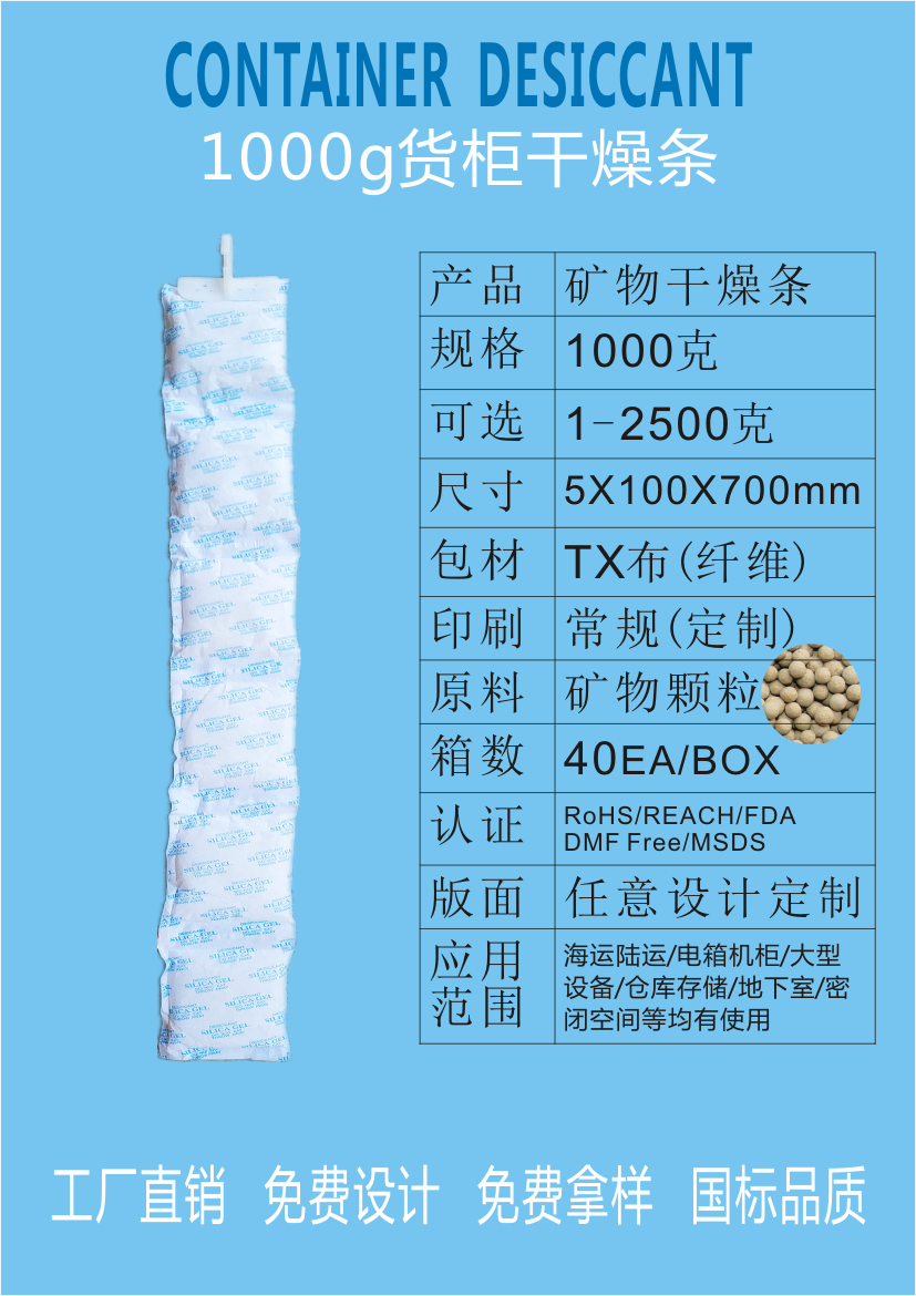 江门新会惠源货柜集装箱1000g/克货柜干燥剂条防潮珠厂家批发5