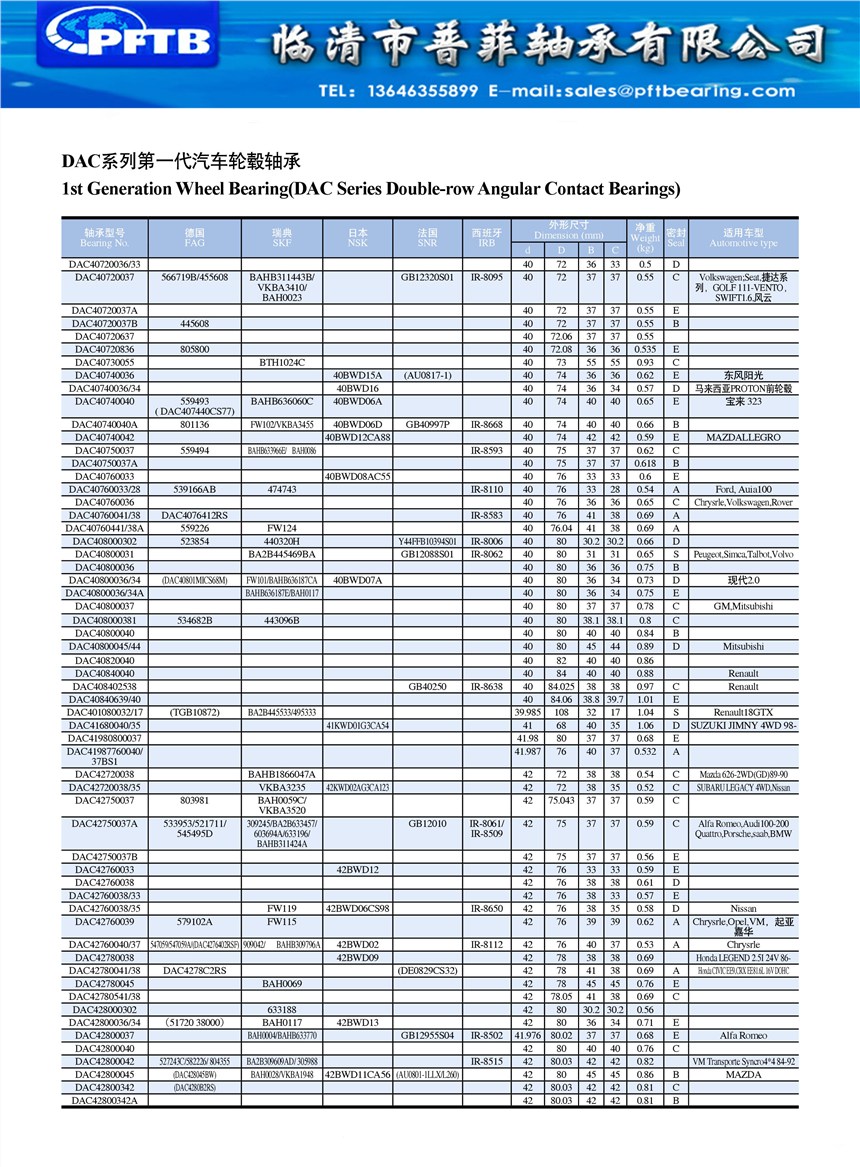 DAC3060037 | 52981AB | BA2B633313CA | 30BWD07 | 30 | 60.3 | 37 | 37 | 0.42 | C | Fiat131-147,Ladalancia,seat,Volvo |