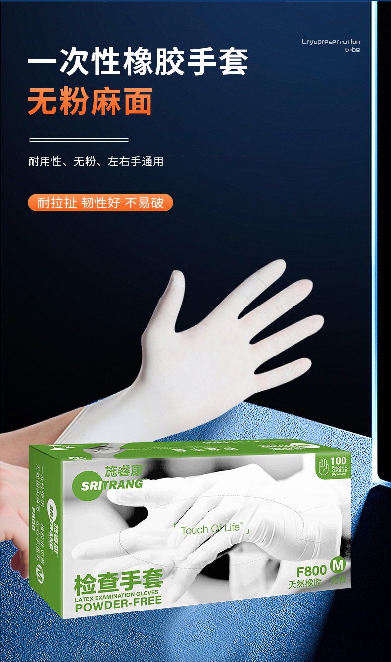 施睿康诗董原装一次性乳胶/丁腈手套F800无粉丁腈科研医疗手套 型号 | F800 | ||