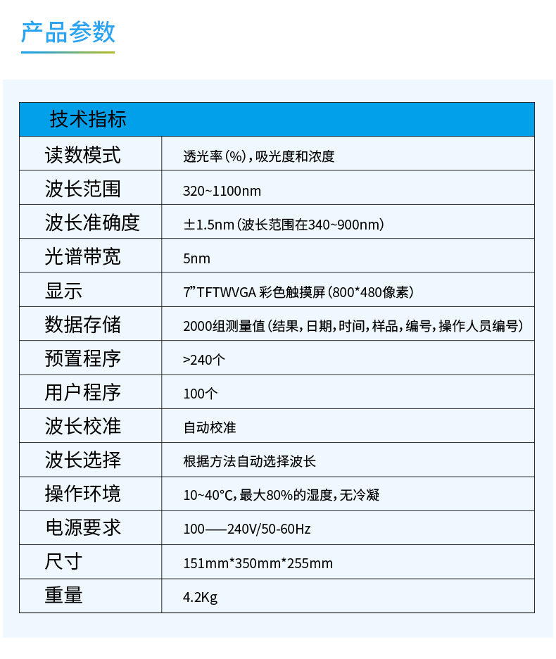 产品参数 | |||