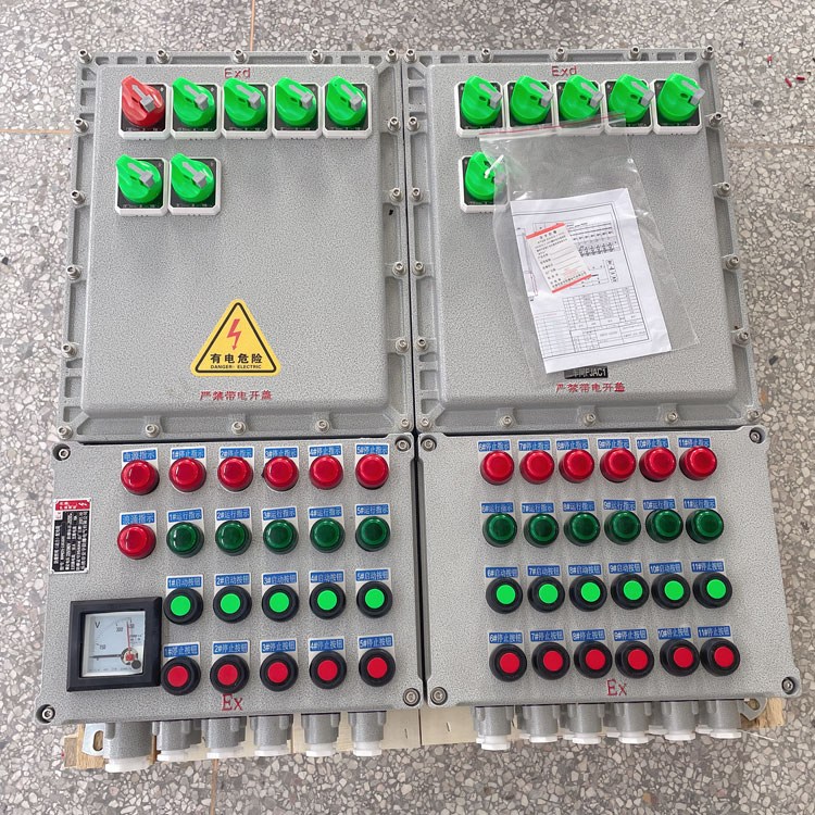 二、防爆配电箱内装高分断小型断路器或塑壳断路器、交流真空接触器、电动机保护器、电压表等元件,具有过载、短路、欠压、缺相、漏电等保护功能,还可以按照客户的要求,安装一些其他元件;