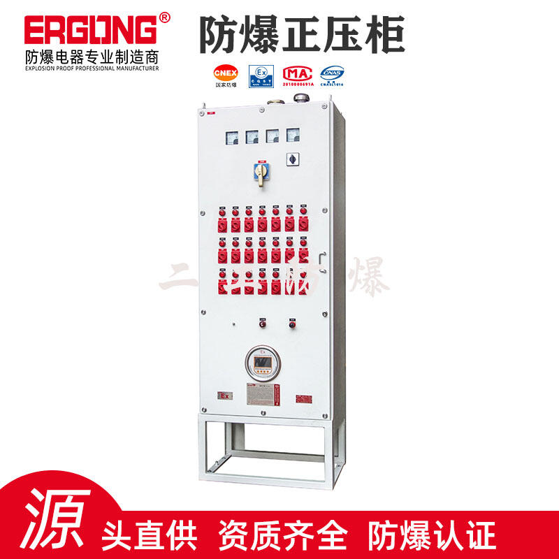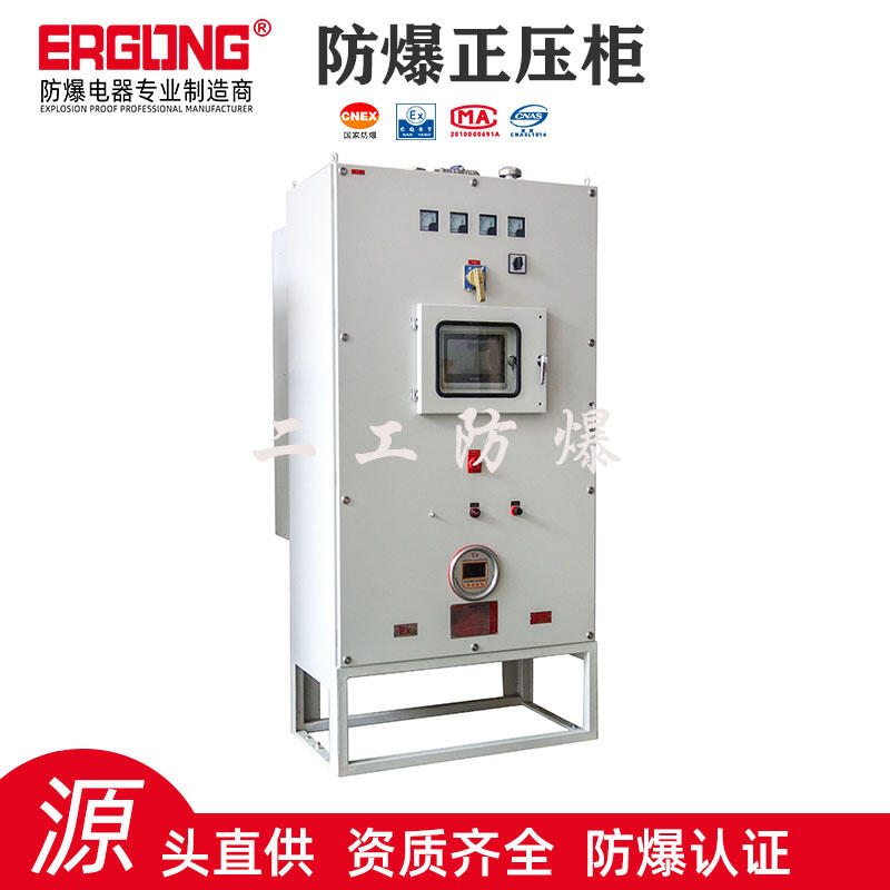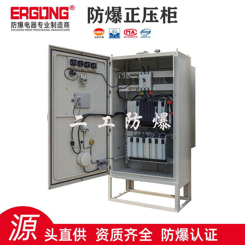 1.防爆正压柜在自动控制系统的控制下,正压腔内压力高于正压腔外的压力,形成微正压的安全小环境,从而阻止了可燃性危险气体进入正压腔内,对于内装的普通仪表和电器元件产生的电弧、火花进行完全的隔离,保障了现场的安全允许。