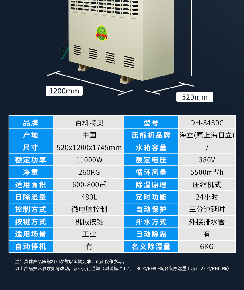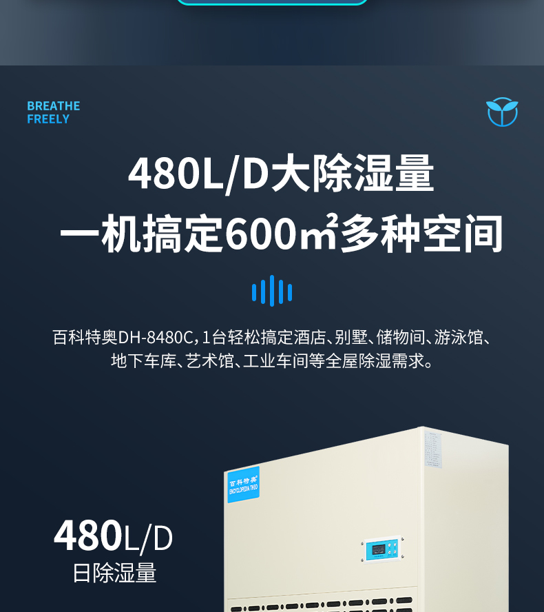 480升20kg/h防结露除湿机百科特奥抽湿机DH-8480C产品特点概念: