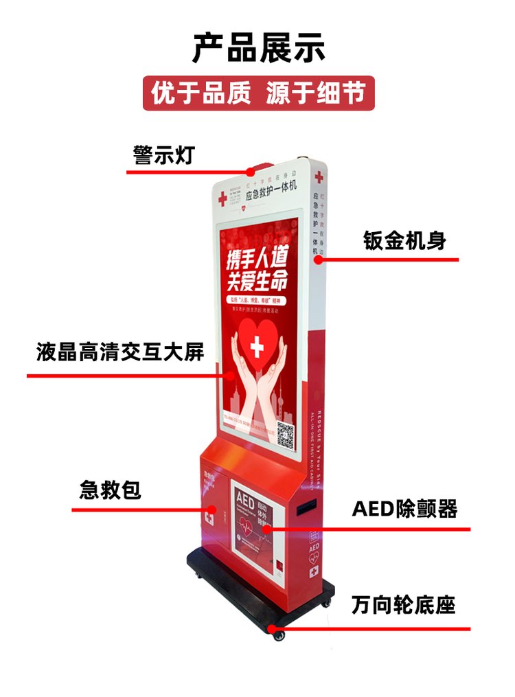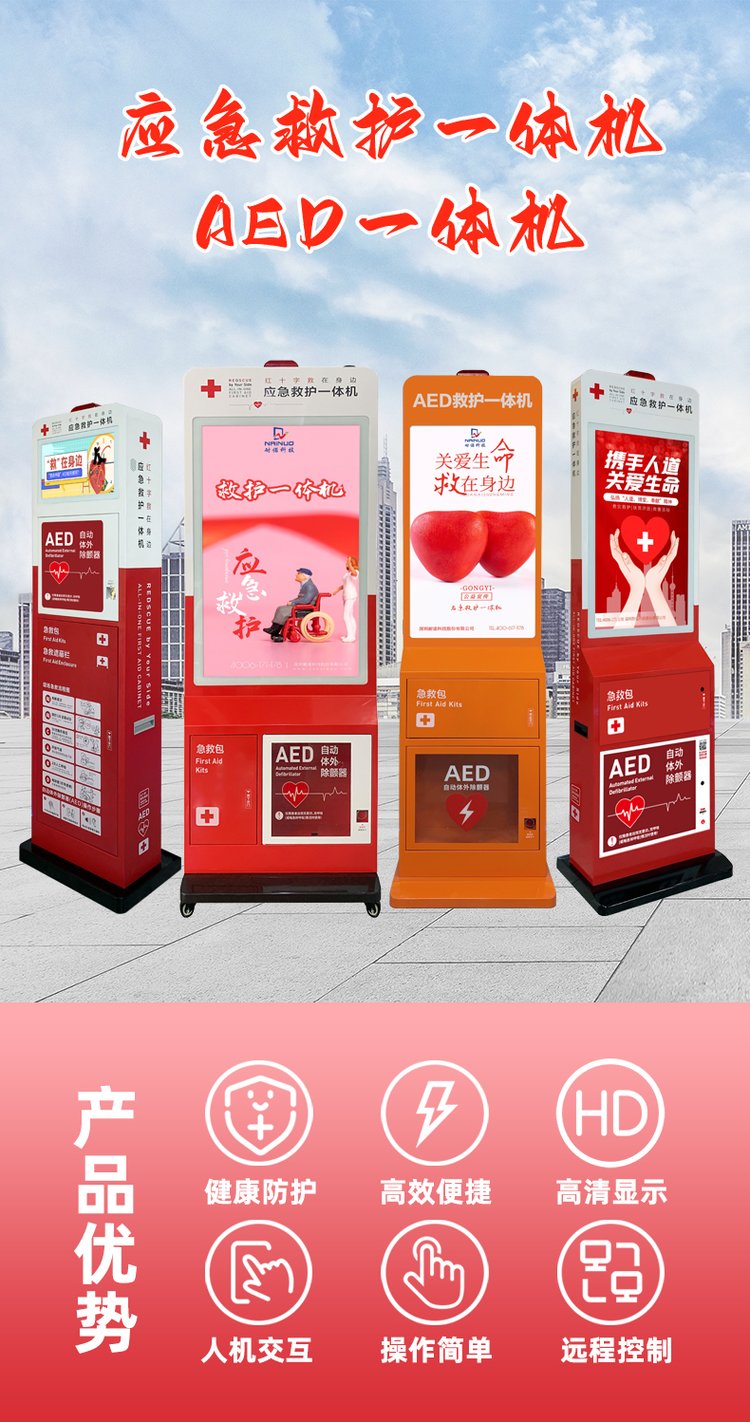 学校校园救护一体机AED智能多功能急救站带屏幕-耐诺科技