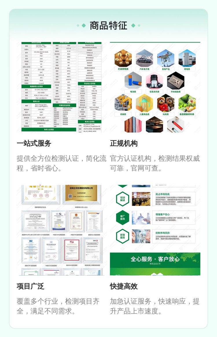 特定检测 | 加州65检测、包装指令球认证标志、新加坡短链氯化石蜡检测等 | ||
