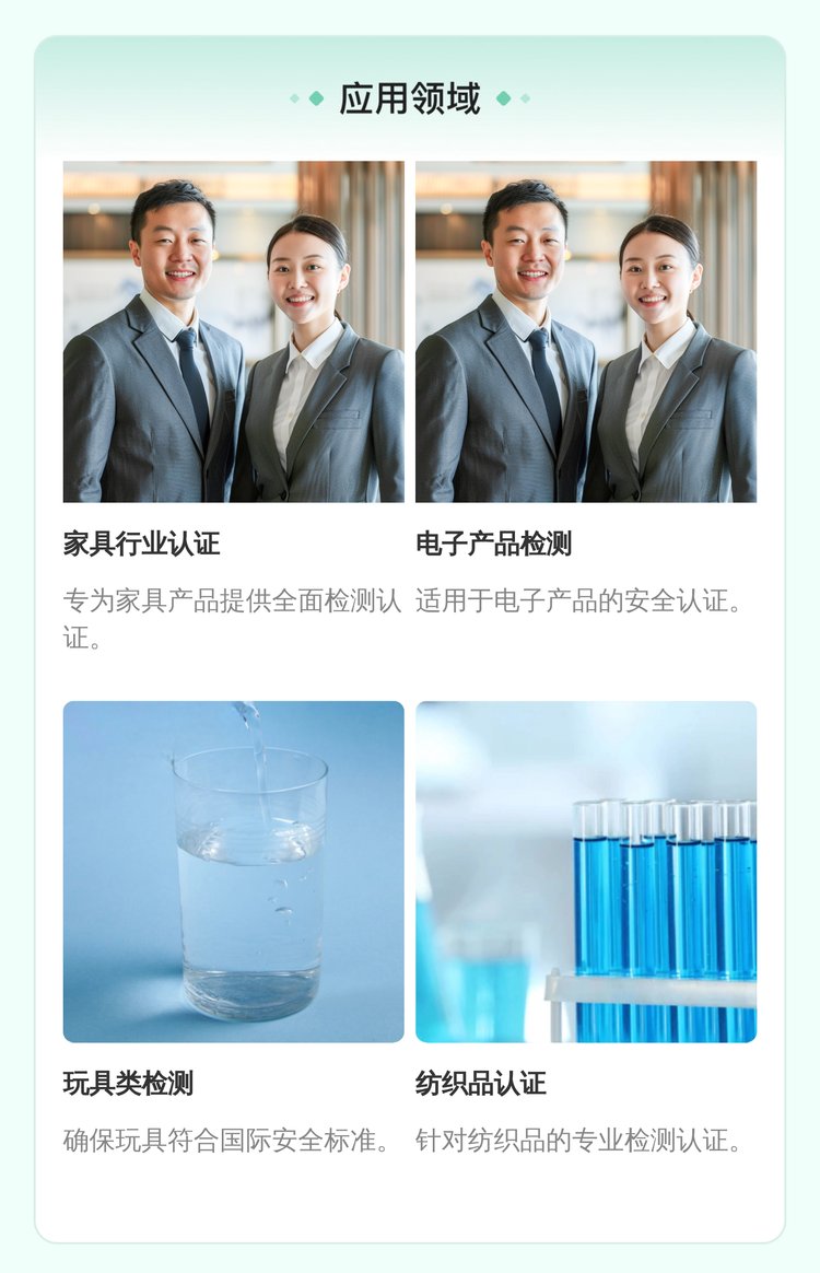适用范围 | 适用于家具行业产品检测认证 | ||