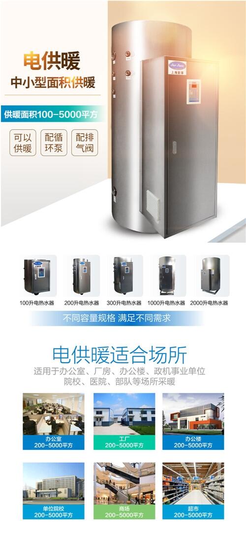 1)容积式电热水炉(电热水器):容量100L—3000升(3吨)不等。电加热功率从6kw-100千瓦不等。还有非标定制能力,功率可以做到500千瓦。