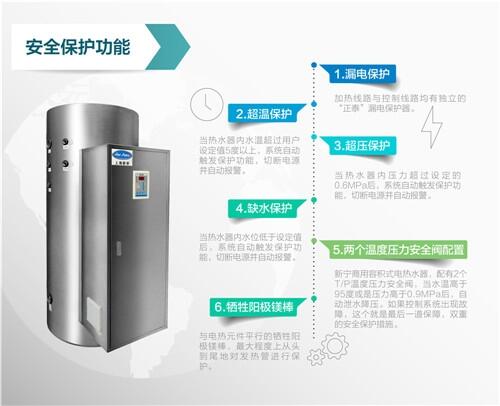 5)低水位防干烧保护系统:当热水器内部水位低于标准值后,热水器自动停止加热并触发报警信号。(当客户需要加热纯水时,需另行通知销售人员以便安装相对应的低水位保护系统)