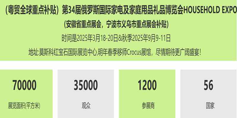 特注:当下全球消费降级,出口外贸获取新订单机会越来越难。出口欧美不确定因素加大,俄罗斯及中亚市场将是未来几年高速增长点。HouseHold Expo2025申请早一点、位置好一点,欢迎参展!