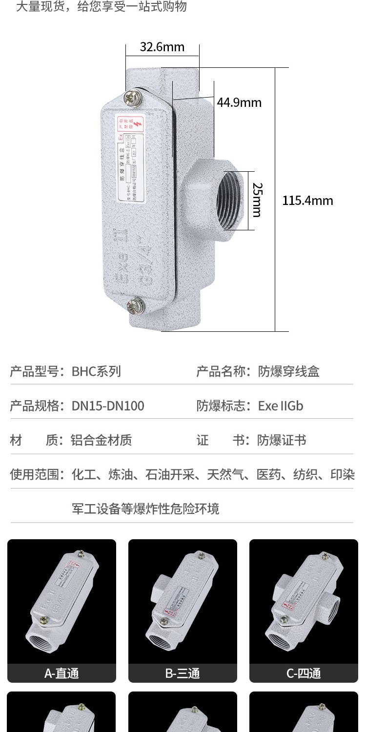 BHC三通铸铝DN20防爆穿线盒G3/4钢管布线专用盒 品牌 | QIEBM | ||