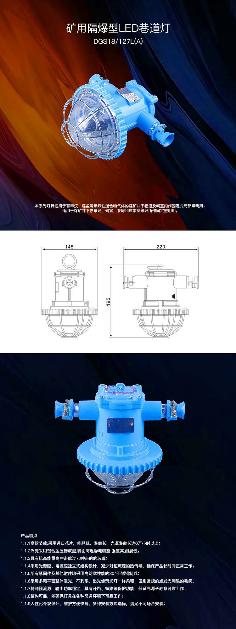 本产品按照GB3836-2000《爆炸性气体环境用电气设备》和MT221-2005《煤矿用防爆灯具》等有关标准设计、制造、检验。?