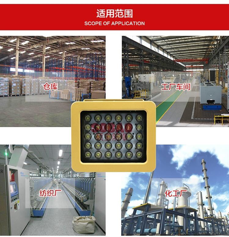 灯具采用隔爆型结构设计,材质为高强度压铸铝,灯具表面经喷塑处理,透明罩采用高强度钢化玻璃,耐腐蚀,美观大方,坚固耐用;