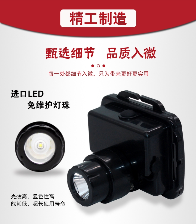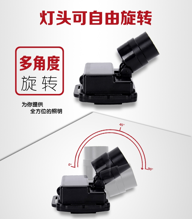 ◆使用方便:人性化设计,可直接头戴或安装在头kui上使用,头带柔软、弹性好,长短可调,照明角度可随意调节;