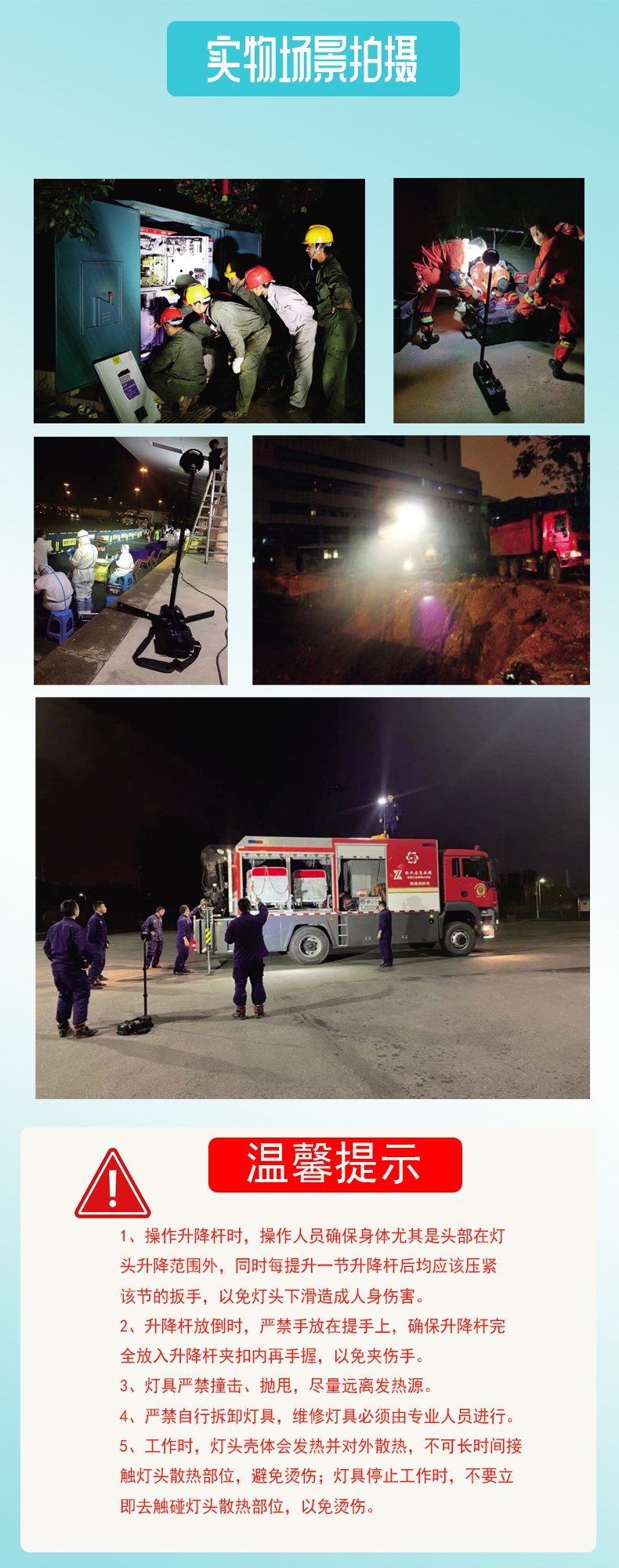 3. 多功能,升降杆可升高到1.2米作固定照明使用,亦可折叠作探照灯使用。