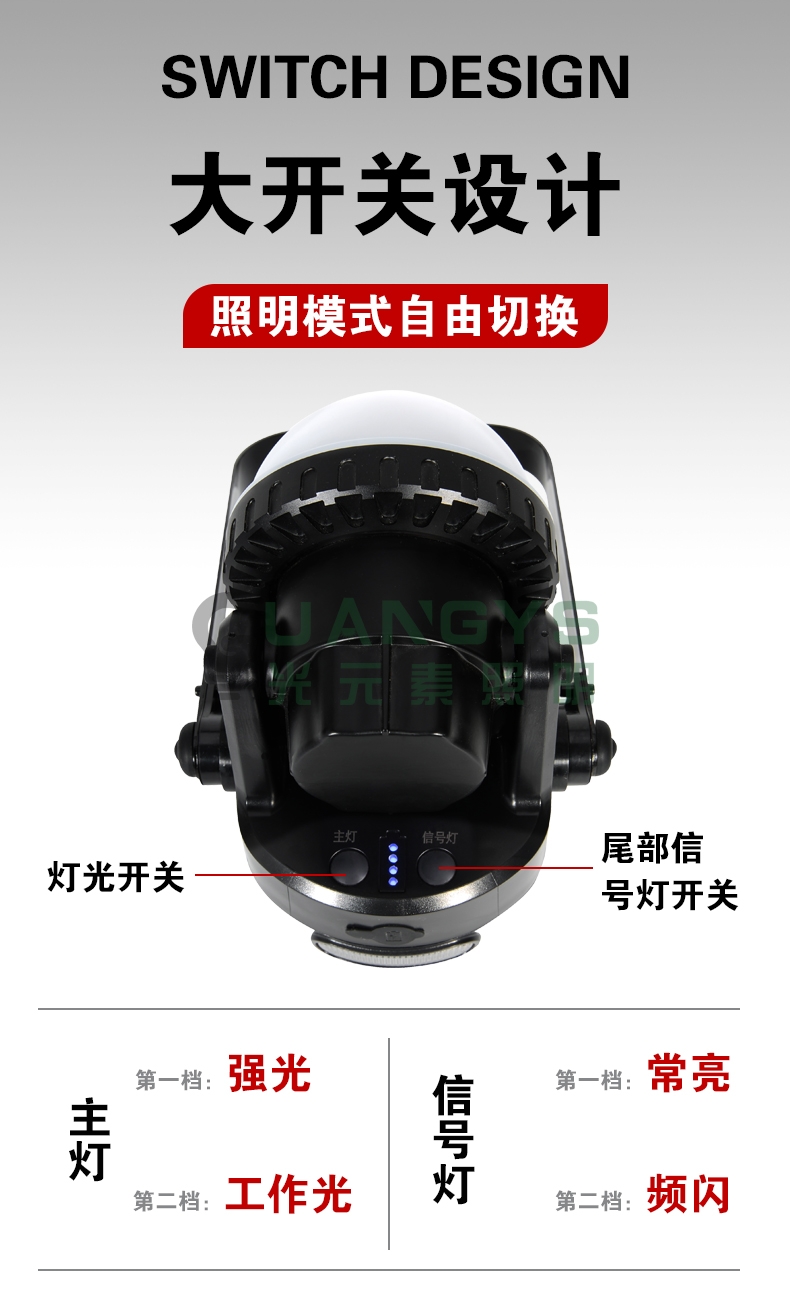 信号指示:底座尾部带黄色警示功能,可以做为工作场景信号指示和夜间信号指示用;
