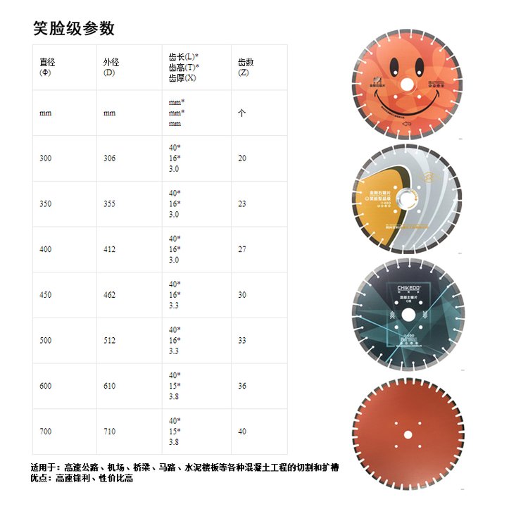 恒锐笑脸锯片直径300-350-400-450-500-600-700锋利混凝土切割