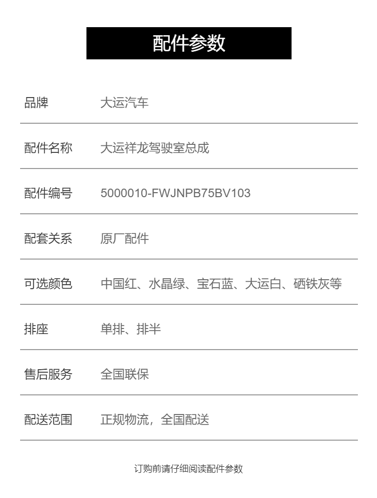 配件名称 | 大运祥龙驾驶室总成 | ||