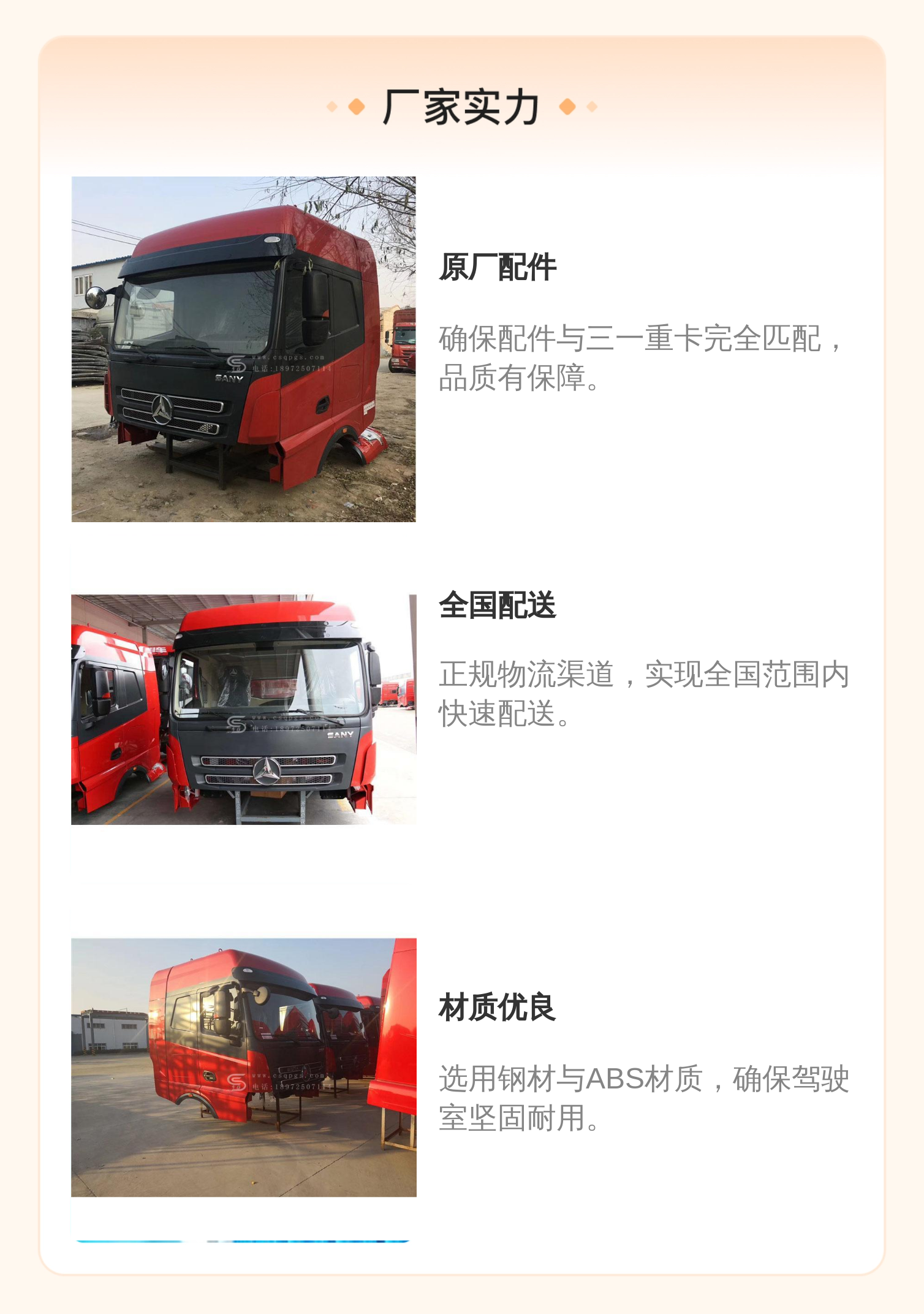 适配车型 | 三一驾驶室 | ||