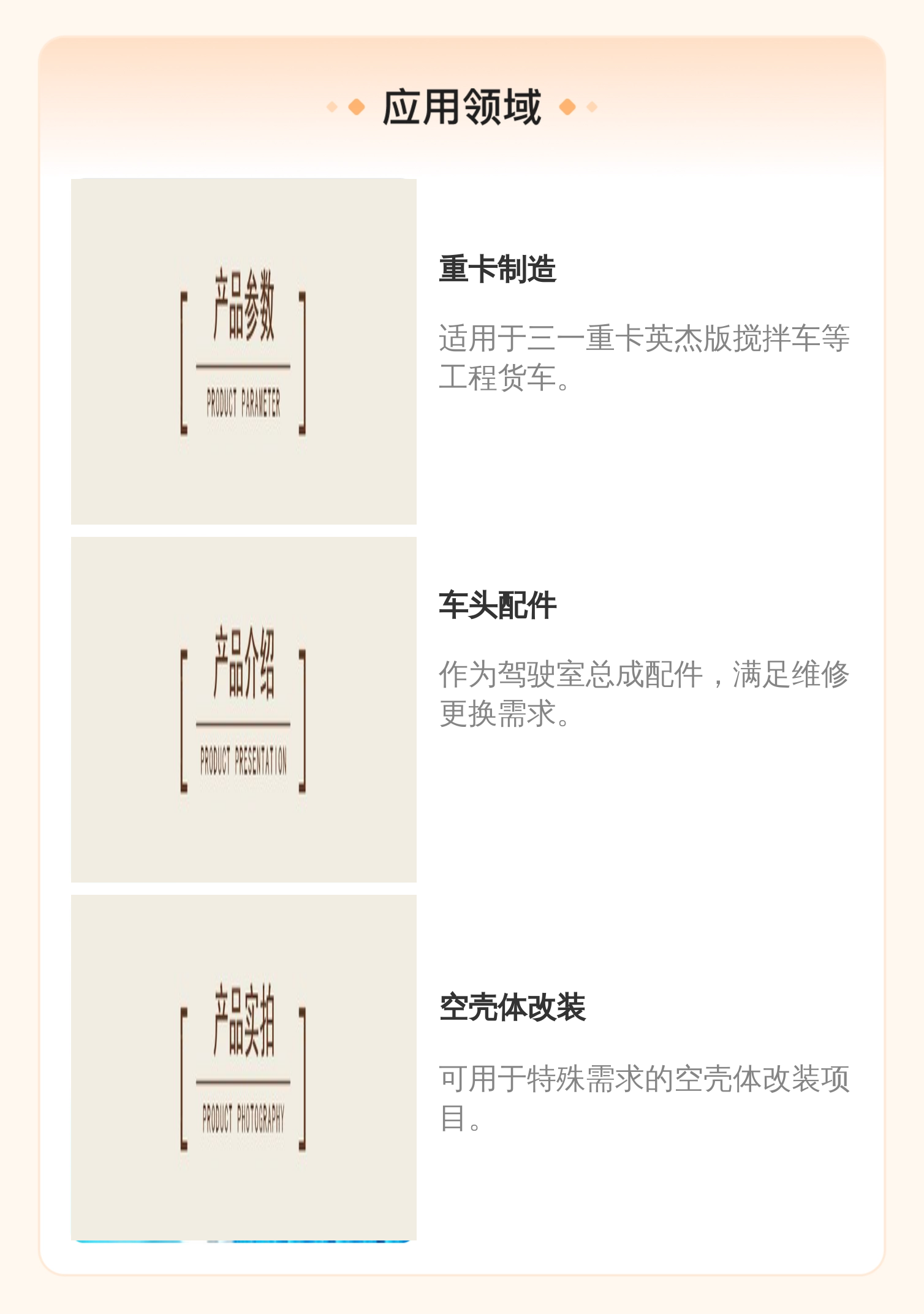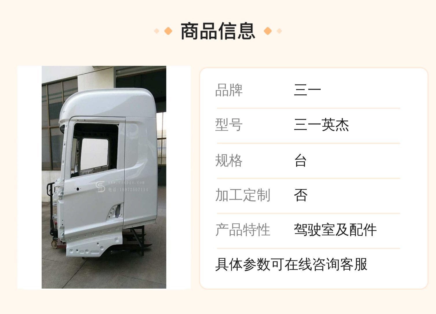 产品特性 | 驾驶室及配件 | ||