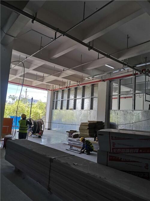 (9)安装暗设管线和插座及内部填充物(按设计要求,如岩棉)如需在竖龙骨开孔,孔