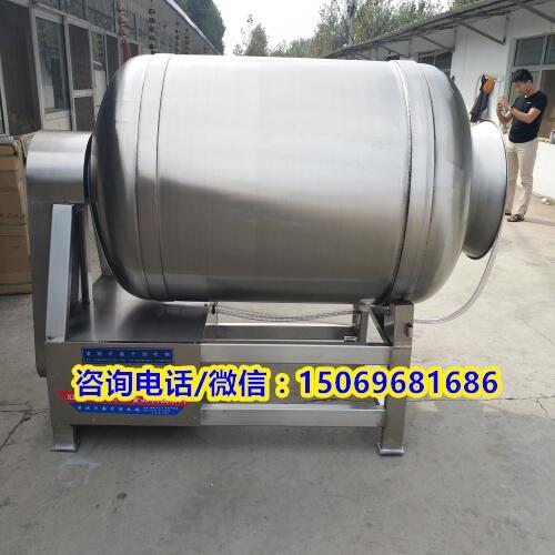 真空滚揉机,肉制品真空滚揉机是在真空状态下,利用物理冲击原理,让肉块或肉馅在滚筒内上下翻动,从而达到腌渍作用,腌渍液被肉充分的吸收,增强肉的结合力和保水性,提高产品弹性及出品率,本机采用不锈钢制作,肉制品真空滚揉机圆形封头,结构合理,调理品滚揉机哪家好,滚揉空间大,运行平稳,噪音小,性能可,操作简单,调理品滚揉机价格,设备使用率高。桨叶圆弧形,设计独特,使腌料分布均匀,对产品表层不造成伤害,是产品的柔嫩性的外观得到提高。单速滚揉,双速滚揉,变频运行可选择;肉制品真空滚揉机可实现自动出料、能减轻劳动强度并提高生产率,具有连续、间歇滚揉、反转滚动出料等功能。