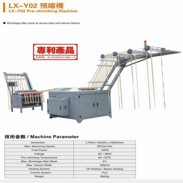 本预缩机(又名整烫机)主要用于纯棉、涤棉、麻棉、混纺织物、各种编织带、弹力织带进行成品前预缩处理以及弯带整平等处理。