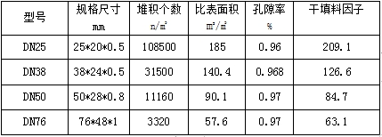 金属矩鞍环填料产品的规格型号有:DN25、DN38、DN50、DN76。