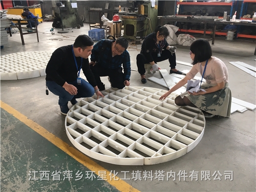 由于塑料格栅板片间距离较大,板片表面十分光滑,气体上升和液体下降阻力大大的降低,气体和液体有固定的通道,流体在板片间不断地冲刷接触,使得含尘气体和液体不会再填料表面停滞、沉积、淤堵和堵塞。因此塑料格栅填料是一种高效、大通量、低压降、不会堵塔的新型规整填料,在正常操作条件下,通量比板式塔高80%。塑料格栅也可作为格栅支撑用,安装在填料层底部,作用1、阻止填料穿达填料支撑而掉下来。2、支撑操作状态下填料床层的重量 。3、具有足够的自由面积已使气液两相自由通过。格栅间的间隙可根据客户要求制造。